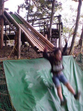 すべり台から下のネットにダイブです。