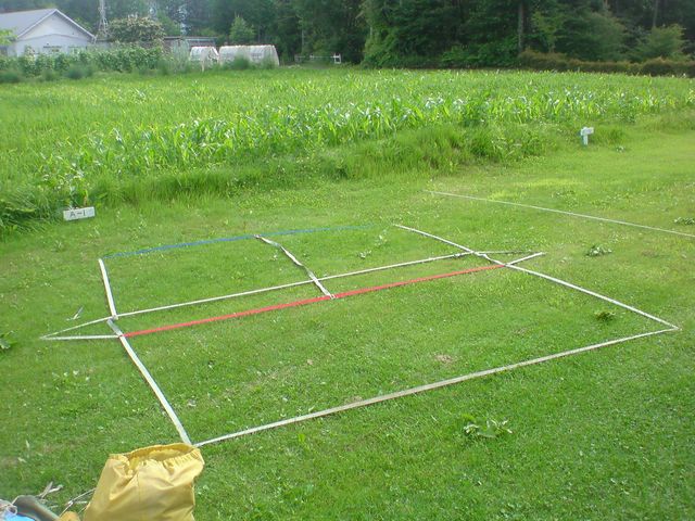 まずは設営場所をきめたら、グランドテープを設置します。